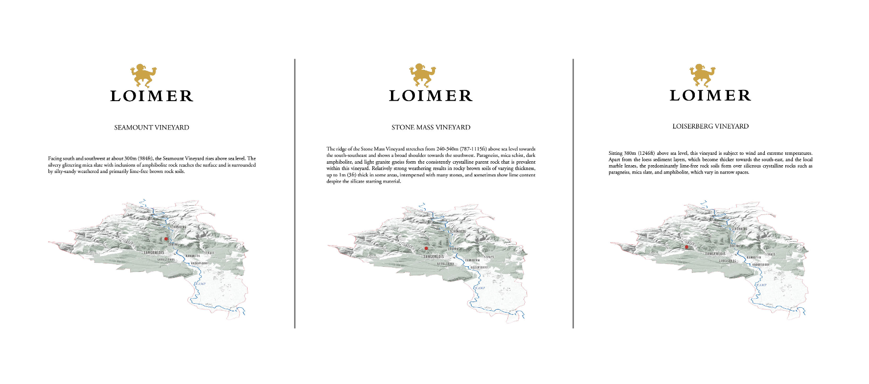 The estate is best known for Grüner Veltliner and Riesling, which thrive on Kamptal’s contrasting soils of primary rock and loess. The wines show bright fruit, crisp acidity, and distinct mineral profiles, whether from the steep Heiligenstein vineyard or the loess-rich Käferberg. Loimer also produces sparkling wines (Sekt) that highlight Austria’s growing reputation in this category.